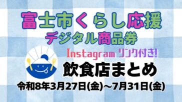 富士市【2026年】富士市くらし応援デジタル商品券を使える飲食店を富士市グルメがInstagram投稿記事と紐づけてまとめました!