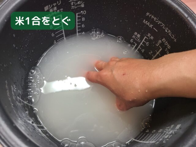 炊飯器でまとめて4合炊き、倍の分量で材料をまぜればまとめて炊飯ジャーの中でたくさん作れます。