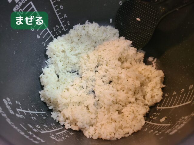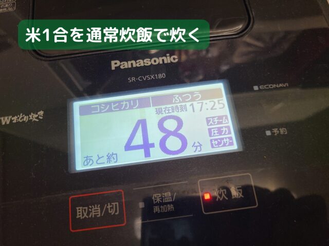 原作ではごはん2膳分とあったところ、本記事では炊き立てごはん1合分で調理したため時間がかかっていますが…