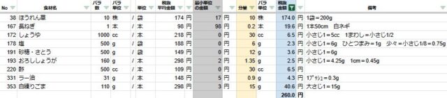 ほうれん草のピリ辛ねぎゴマだれの2人分の材料費は260円でした