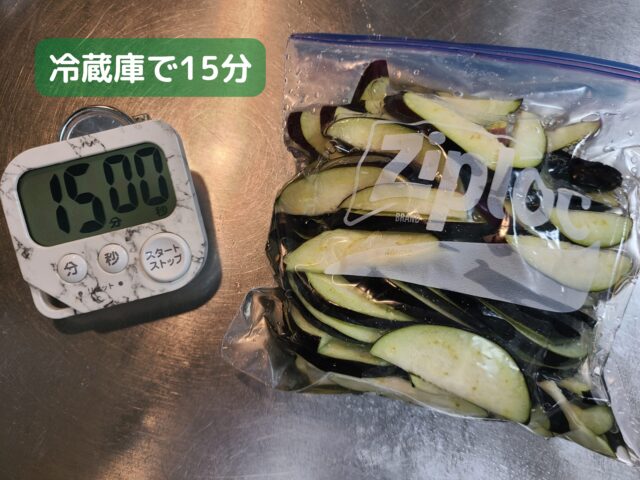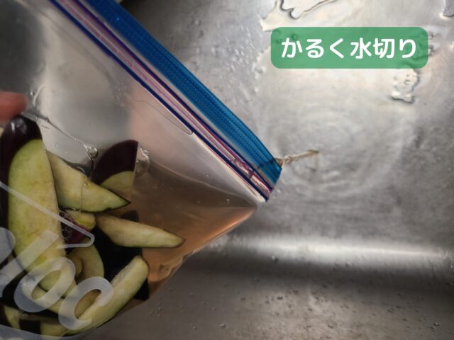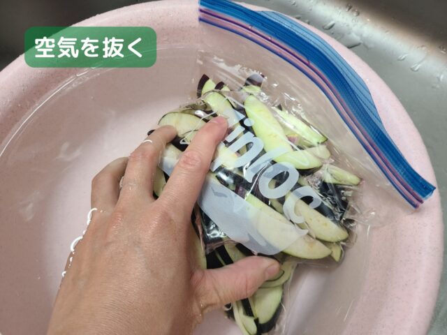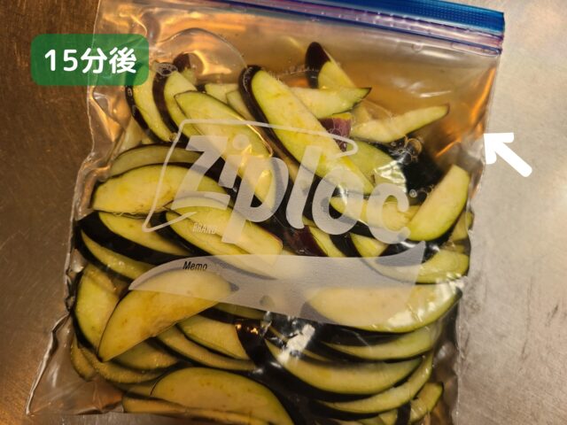 2.切ったなすはポリ袋に入れる。(本記事ではジップロックを使用)