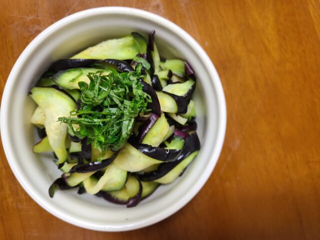 なすの浅漬けはよい塩加減と大葉のさわやかさで箸が止まらない!