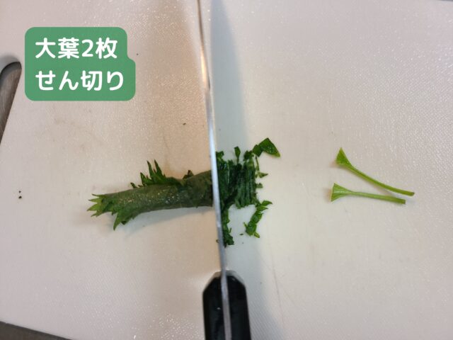 6.なすを塩水に漬けている間に、大葉の準備をする。