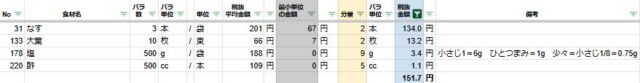 なすの浅漬けの2人分の材料費は151円でした
