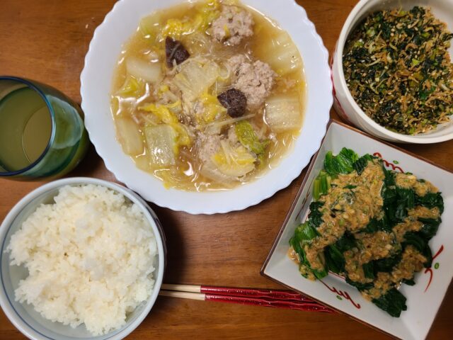 そして、シロさんの白菜と肉団子のスープがついた今日のお献立はこちらになりました!