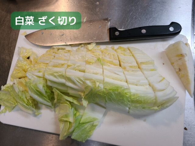 9.白菜1/6こは芯をおとしてざく切りにする。