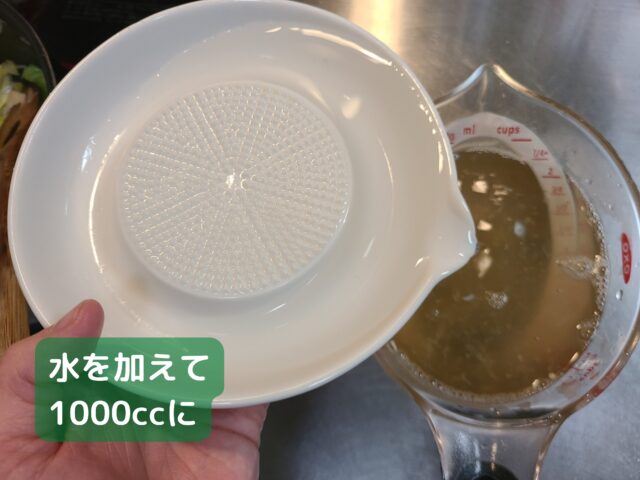 13.干ししいたけの戻し汁に水を加えて1000㏄にする。