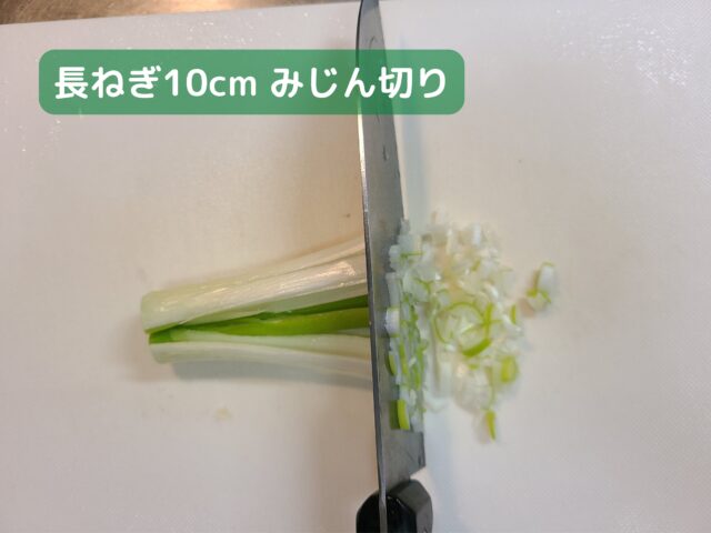 1.長ねぎ10cmをみじん切りにする。