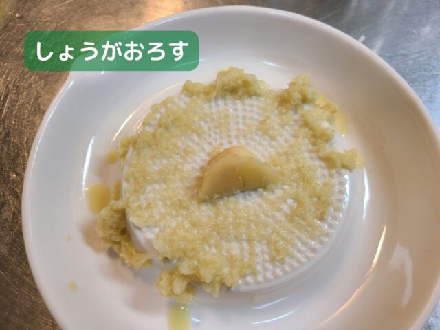 3.おろし用に切り分けたしょうがをすりおろす。