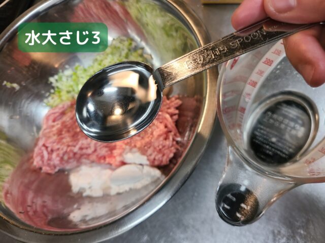 5.肉団子のタネに、水大さじ3を加える。
