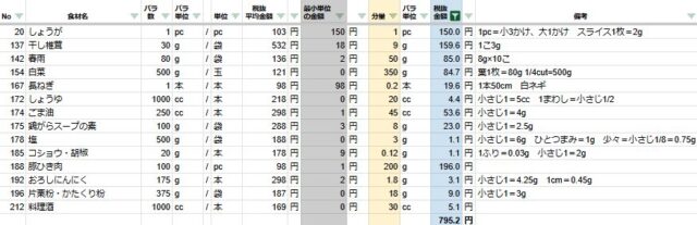 白菜と肉団子のスープの4人分の材料費は795円でした