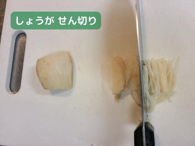 7.せん切り用に切り分けたしょうがをせん切りにする。