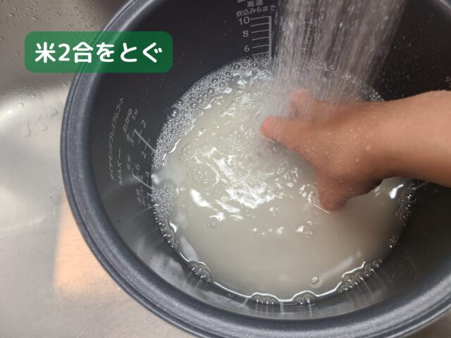 1.米2合をとぐ。