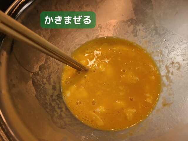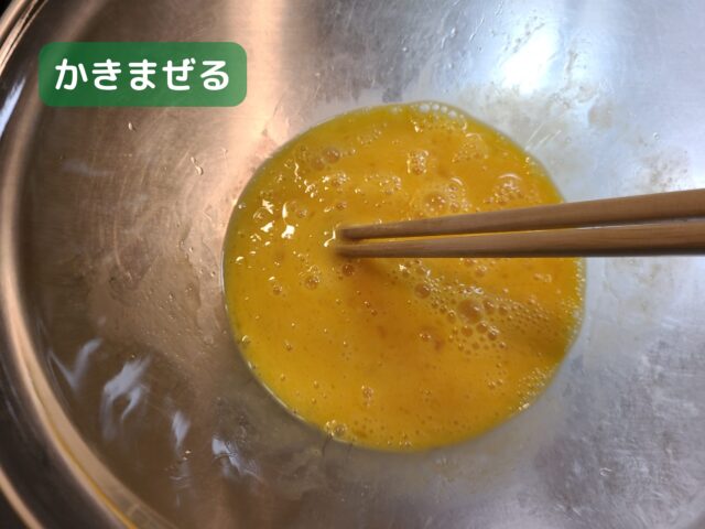 6.卵と調味料をかきまぜ合わせる。