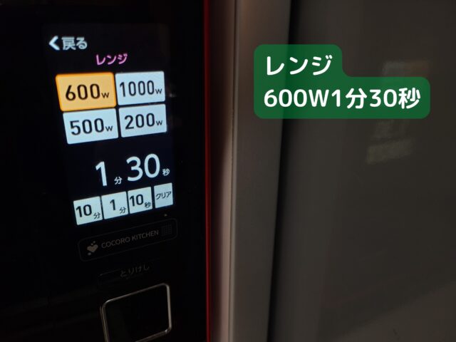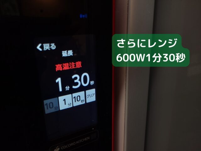 8.600Wのレンジで1分30秒あたためる。(1回目)