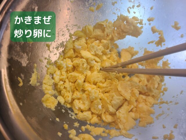 11.卵をかきまぜ、炒り卵にする。