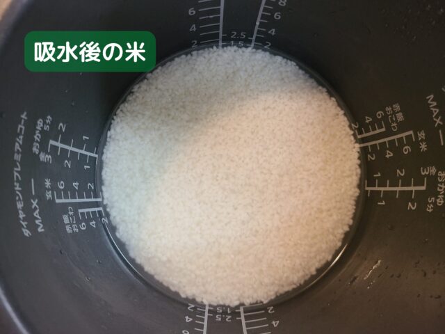 お米が水を吸ってふっくらしています。