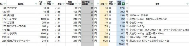 炊き込みチャーハンの2人分の材料費は328円でした