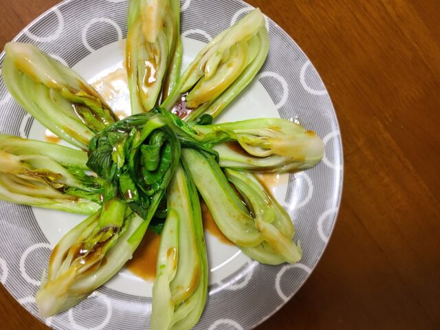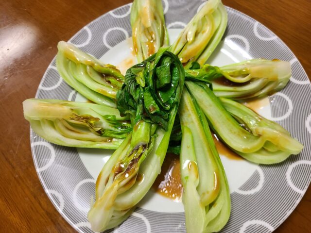 チンゲン菜の湯引き風オイスターソースがけの作り方を9枚の画像で徹底解説!