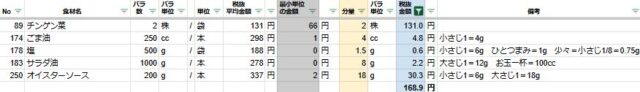 チンゲン菜の湯引き風オイスターソースがけの2人分の材料費は168円でした